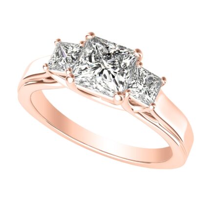 2 Carat 3 Three Stone Princess Diamond Engagement Ring 14K Rose Gold H-I Color I1-I2 Clarity