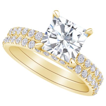 1 Carat (ctw) 14K Yellow Gold Princess Cut LAB GROWN Diamond Engagement Ring Cut To Perfection Princess Diamond Wedding Bridal Set (Color E-F Clarity VS2-SI1)