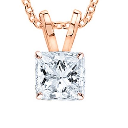 0.25 Carat 10K Rose Gold Princess Diamond Solitaire Pendant Necklace J-K Color I1 Clarity With 16″ Gold Chain