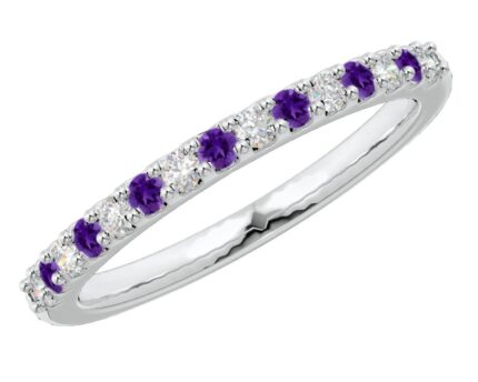 1 Carat Round LAB GROWN Amethyst and Alternating LAB GROWN Diamond Wedding Band (0.5ct Center, AAAA Heirloom Quality) RIPS28W9AM 14K White Gold