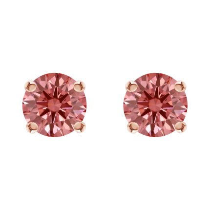 Houston Diamond District Classic 4 Prong Diamond Stud Earrings for Women 14K Rose Gold 1 Carat LAB GROWN Pink Diamond
