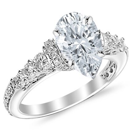 1.25 Ctw 14K White Gold Designer Four Prong Pave Set Round Diamonds Engagement Ring Pear Shape (0.5 Ct F Color SI3 Clarity Center Stone)