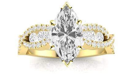 14K Yellow Gold 1.14 CTW Designer Twisting Eternity Channel Set Four Prong Diamond Engagement Ring w/ 0.54 Ct GIA Certified Marquise Cut I Color VVS2 Clarity Center