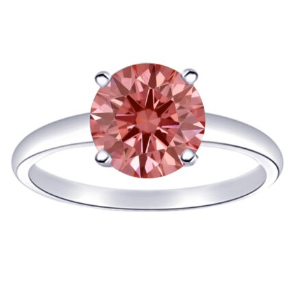 Houston Diamond District 0.5 To 10 Carat Solitaire Round Shape Diamond Engagement Ring (AAA Quality) 14K White Gold Pink Labgrown Diamond 0.50 Carat Size-7