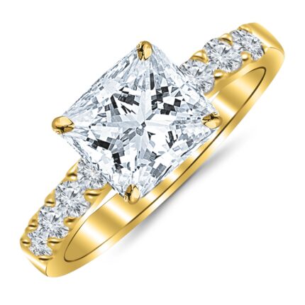 Houston Diamond District Princess Cut/Shape Classic Prong Set Diamond Engagement Ring with a I-J Color, Eye Clean Clarity Center Stone 14K White Gold 1.10 Carat Natural Size-7.01