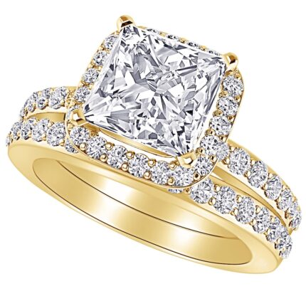 5 Carat (ctw) 14K White Gold Princess Cut LAB GROWN Diamond Engagement Ring Princess Cut Diamond Halo Wedding Bridal Set (Color D-E Clarity VS1-VS2)