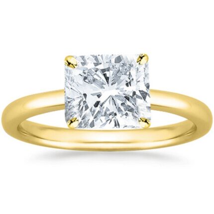 14K Yellow Gold 1.5 Carat Lab Grown Solitaire Cushion Cut IGI CERTIFIED Diamond Engagement Ring (1.5 Ct,E-F Color VS1-VS2 Clarity)