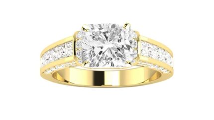 14K White Gold 5 Carat LAB GROWN DIAMOND Contemporary Channel Set Princess And Pave Round Cut Cushion Cut Diamond Engagement Ring (E-F Color VS2-SI1 Clarity 4 Ct Center)