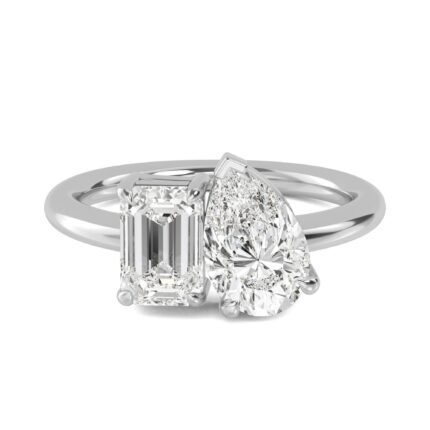 3 Carat (ctw) Platinum EmeraldToi Et Moi Diamond Ring Pear Cut LAB GROWN Diamond Stackable Ring (Color E-F Clarity VS2-SI1) SJR57526-W