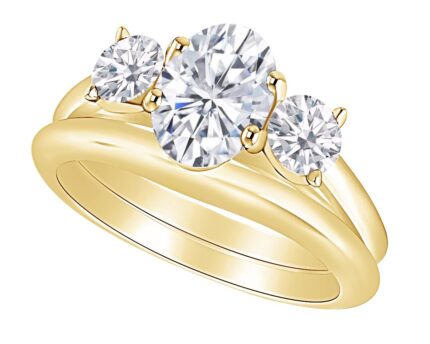 3 Carat (ctw) 14K Yellow Gold Oval Cut LAB GROWN Diamond Engagement Ring Wedding Bridal Set (Color D-E Clarity VS1-VS2)