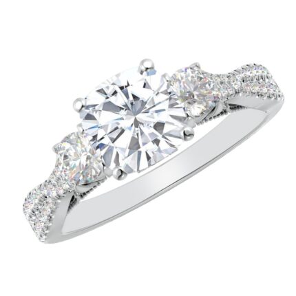 3 Carat Cushion LAB GROWN Diamond and LAB GROWN Diamond Engagement Ring (2.5ct Center, AAAA Heirloom Quality) RISV01W2AM 14K White Gold