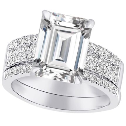 3 Carat Emerald LAB GROWN Diamond and LAB GROWN Diamond Wedding Bridal Set (2.5ct Center, AAAA Heirloom Quality) RISV20W3AM 14K White Gold