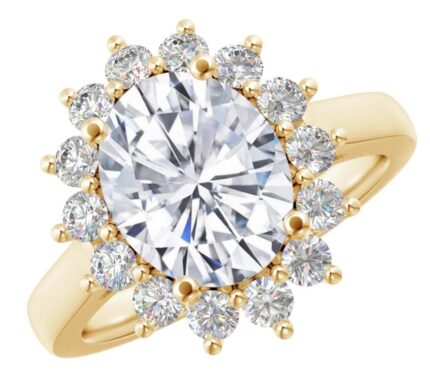 6 Carat Oval LAB GROWN Gemstone and LAB GROWN Diamond Engagement Ring (5.5ct Center, AAAA Heirloom Quality) RIPS70W7DI 14K Yellow Gold