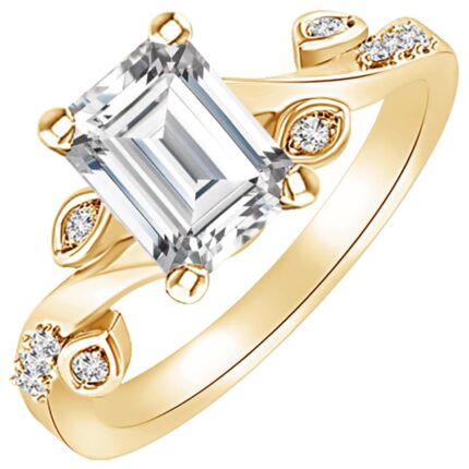 6 Carat Emerald LAB GROWN Gemstone and LAB GROWN Diamond Engagement Ring (5.5ct Center, AAAA Heirloom Quality) RIPS80W3DI 14K Yellow Gold