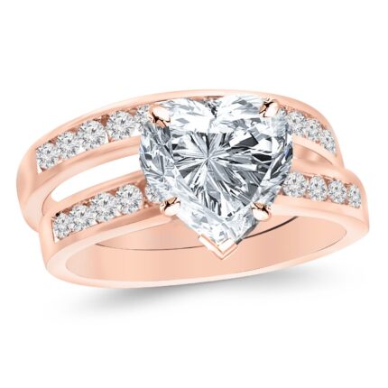 14K White Gold 2.75 Carat LAB GROWN DIAMOND Channel Set Round Cut Diamond Engagement Ring (G-H Color VS1-VS2 Clarity 2.5 Ct Center)