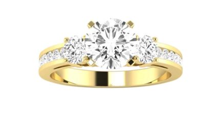 14K Yellow Gold 2.75 Carat LAB GROWN DIAMOND Channel Set 3 Three Stone Round Cut Diamond Engagement Ring (G-H Color VS2-SI1 Clarity 2 Ct Center)