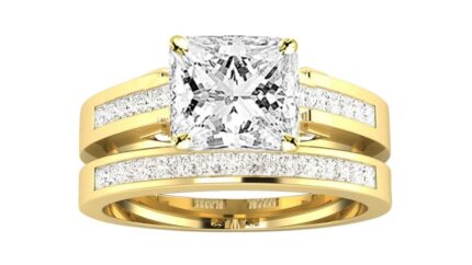 14K Yellow Gold 3.25 Carat LAB GROWN DIAMOND Channel Set Princess Cut Princess Cut Diamond Engagement Ring (G-H Color VS1-VS2 Clarity 2.5 Ct Center)