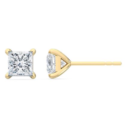 9 Carat (ctw) 14K Yellow Gold Princess Cut LAB GROWN Diamond Solitaire Designer Push Back Earrings (Color E-F Clarity VS2-SI1)